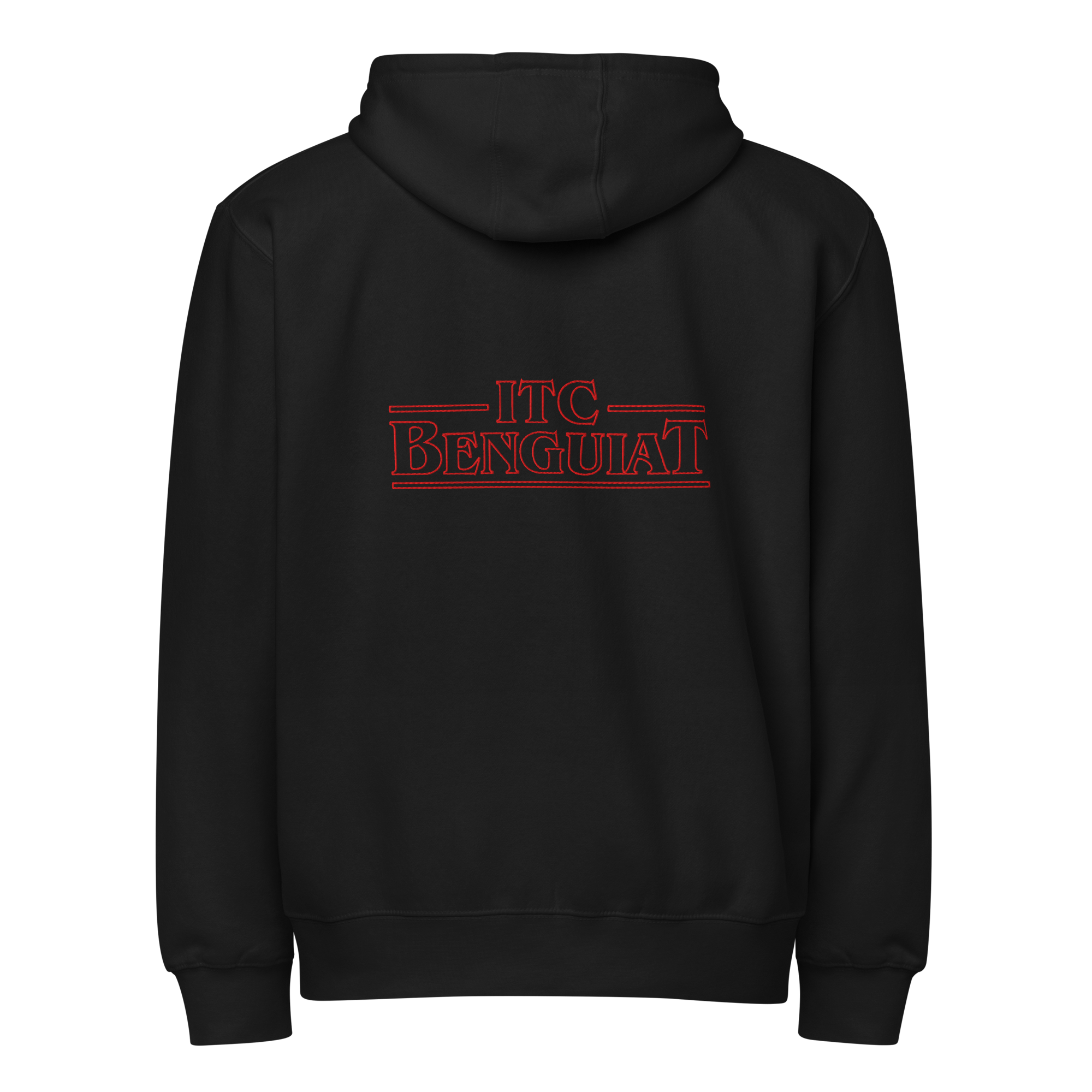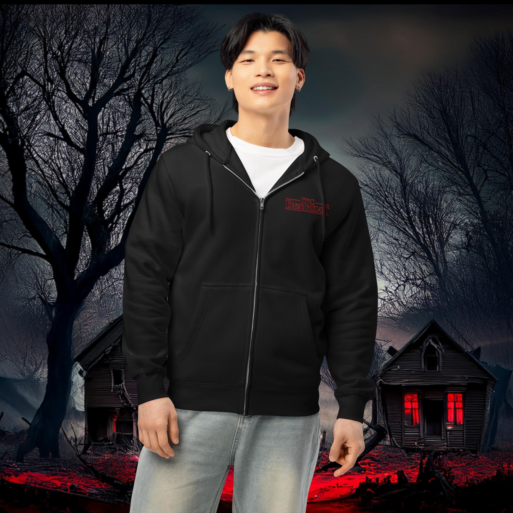 This zip hoodie channels the retro-mystery vibe of Stranger Things with its bold ITC Benguiat lettering, all wrapped in a soft, warm build made for real-world adventures. Its relaxed fit and clean silhouette make it the hoodie you’ll grab whether you’re biking past Hawkins Lab, exploring the woods, or just hiding out on the couch with Eggos.